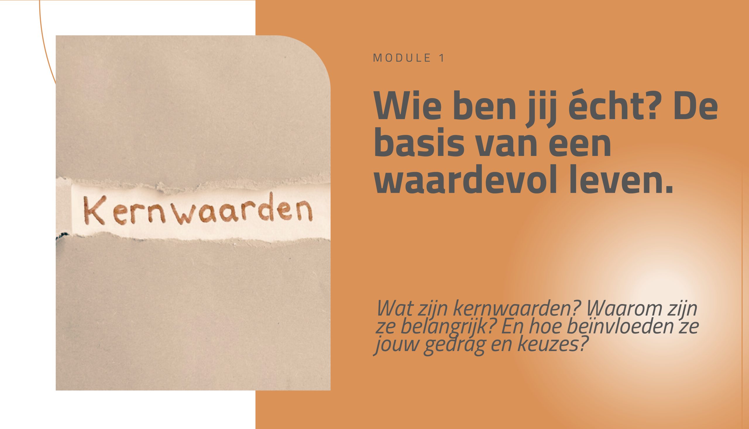De cursus bestaat uit 6 modules waarin je niet alleen je kernwaarden ontdekt, maar ook leert hoe je ze in je dagelijks leven kunt integreren.