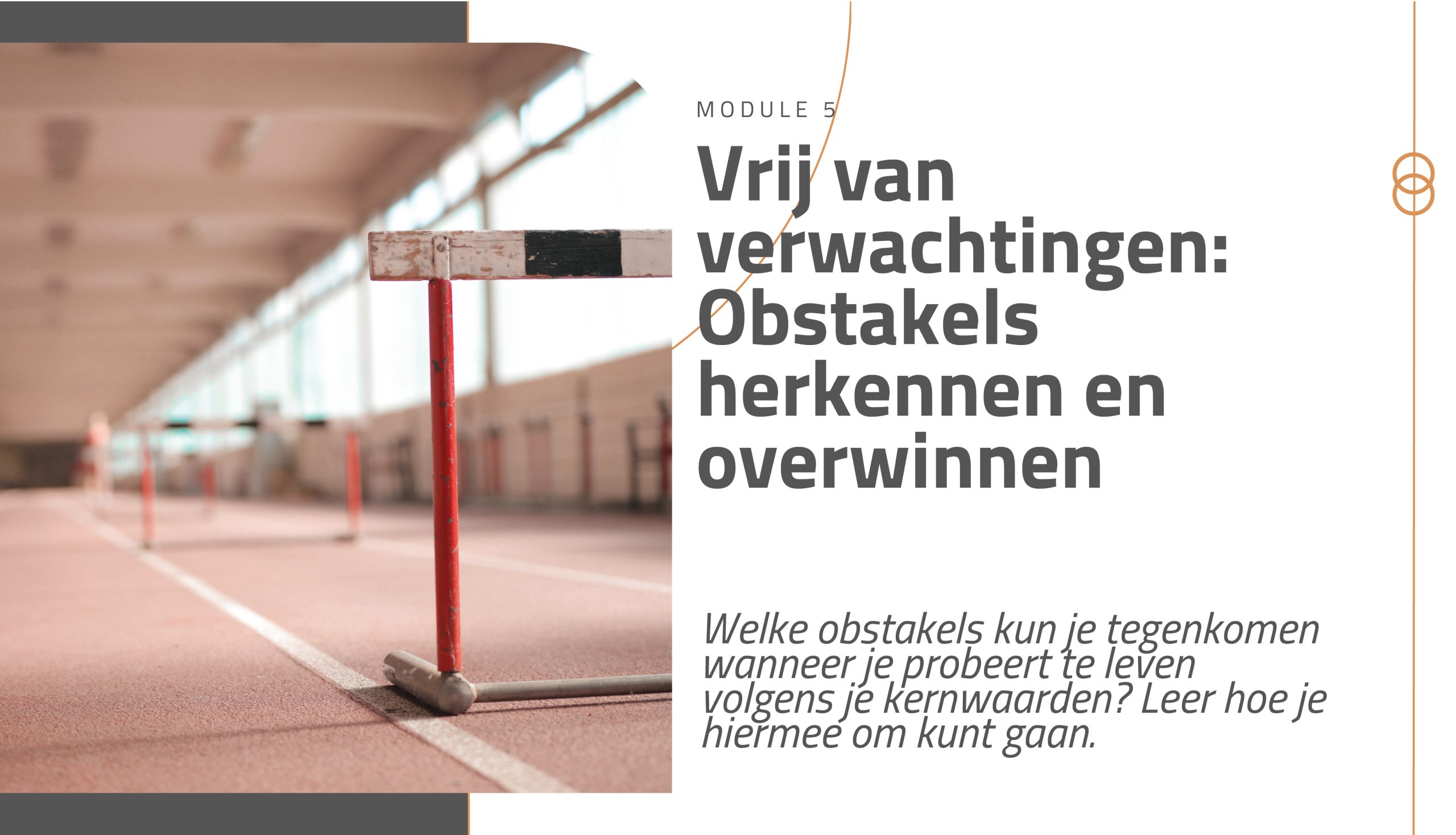 In deze module gaan we dieper in op de obstakels die je kunt tegenkomen bij het leven volgens je kernwaarden en hoe je deze kunt overwinnen.